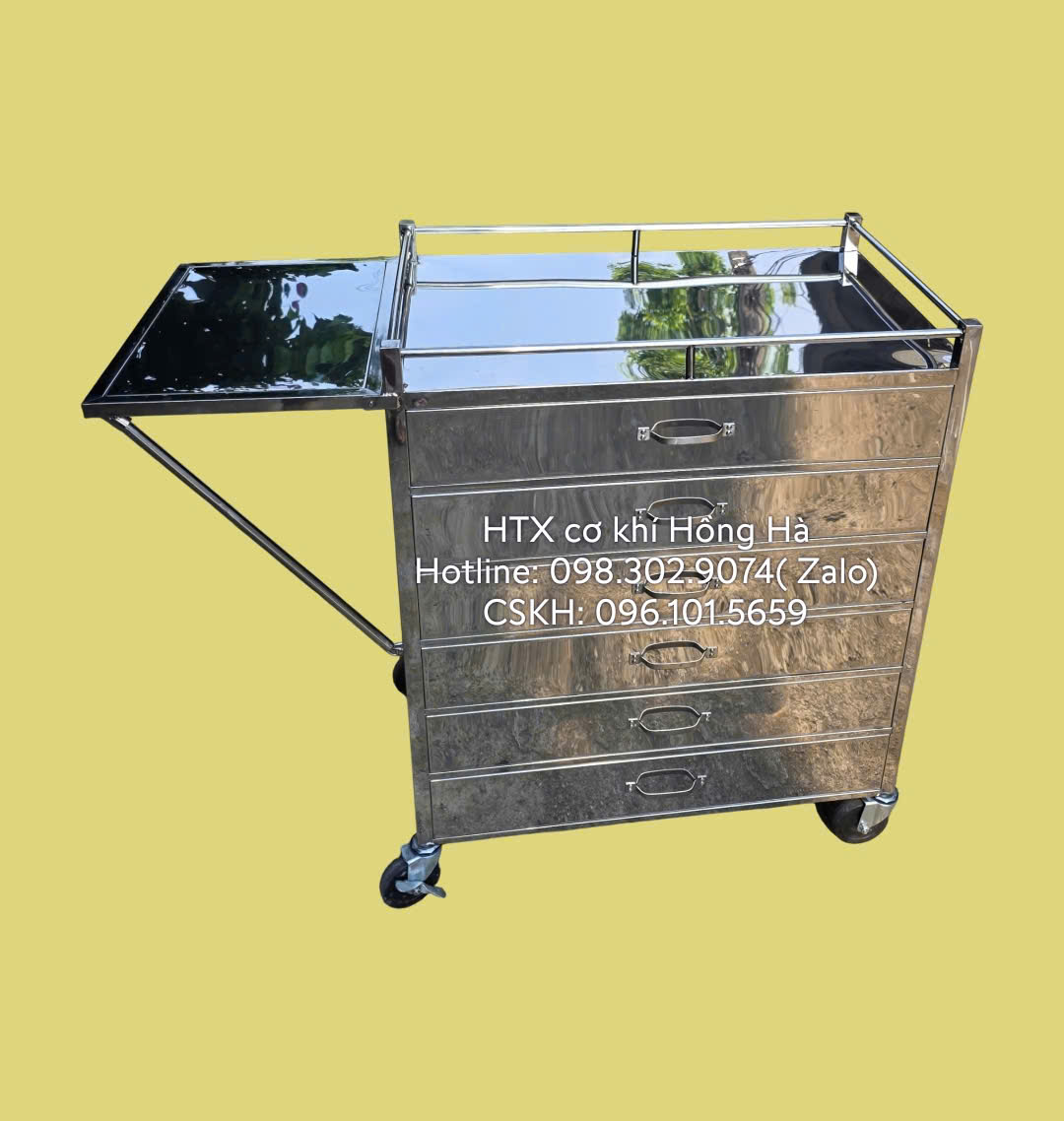 Xe đẩy đồ cấp cứu và làm thủ thuật inox